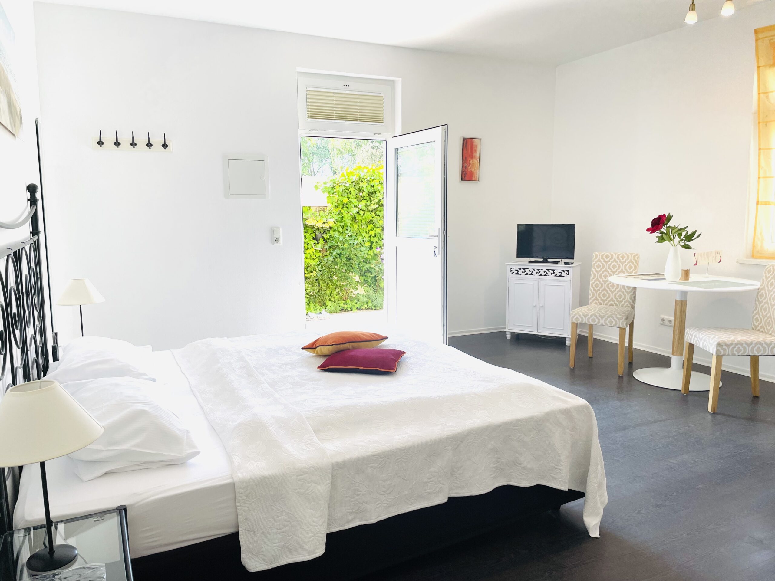 Neu ist die kleine Terrasse vor dem Zimmer. Sie haben hier ganz phantastische Morgensonne, perfekt zum Frühstücken (Bilder folgen demnächst). Sie benötigen mehr Platz? Dann nutzen Sie bitte den ruhigen und sonnigen Garten (ein einfacher Grill ist vorhanden).