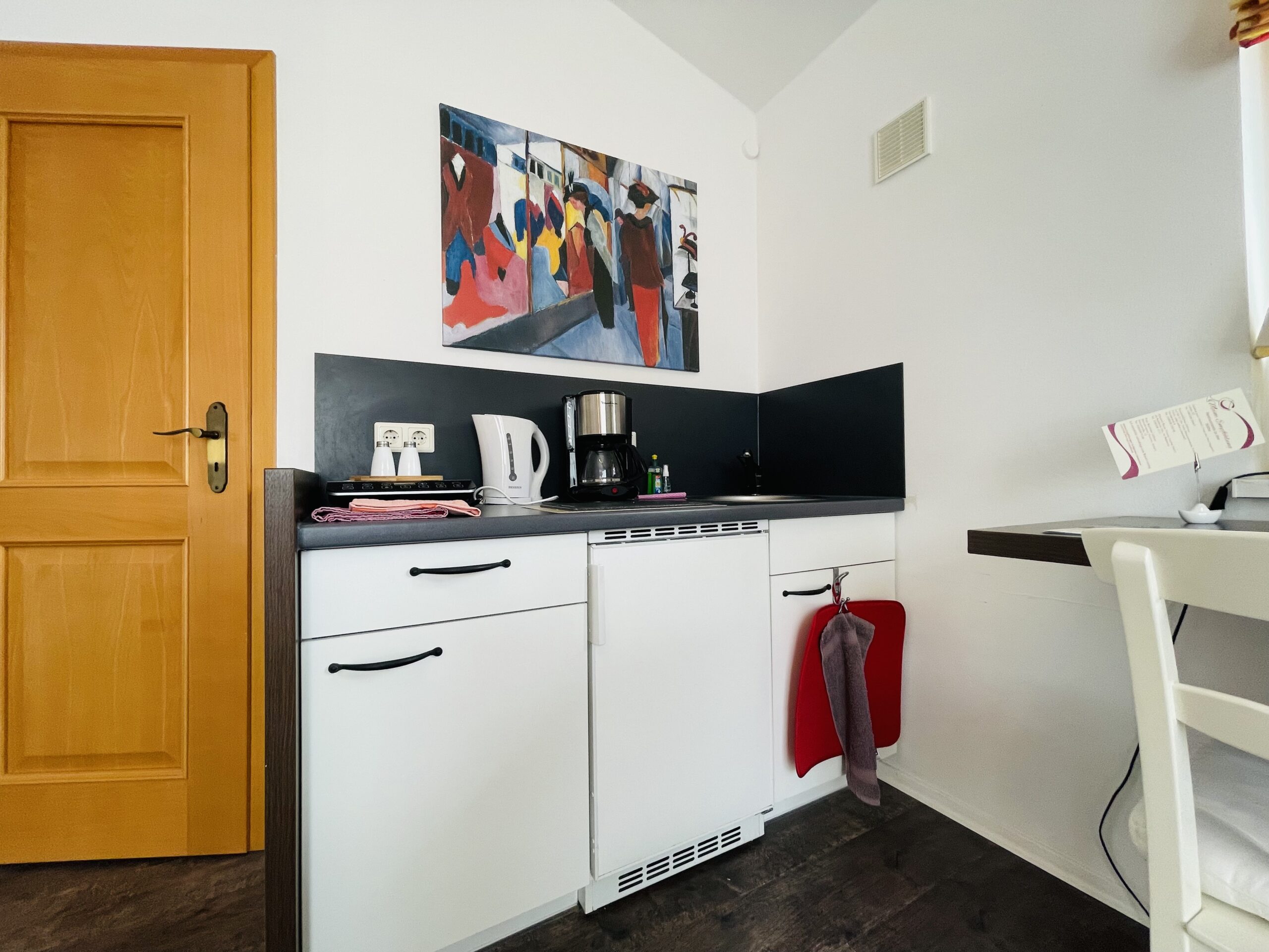 In der Pantry-Küche finden Sie alles, was Sie für ein perfektes Frühstück brauchen: Kühlschrank, Wasserkocher, Toaster, ausreichend Geschirr, Besteck, Gläser usw.